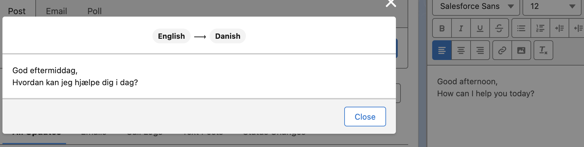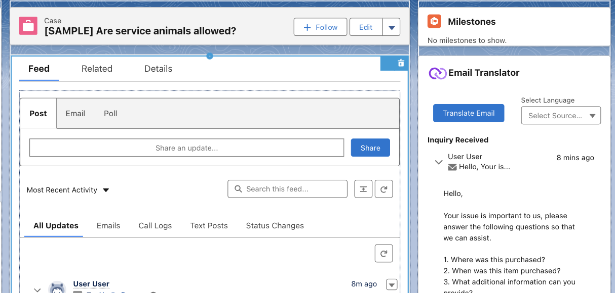 - Now when a Case is created translations will asynchronously populate the fields selected in the Translation Field Rules tab.