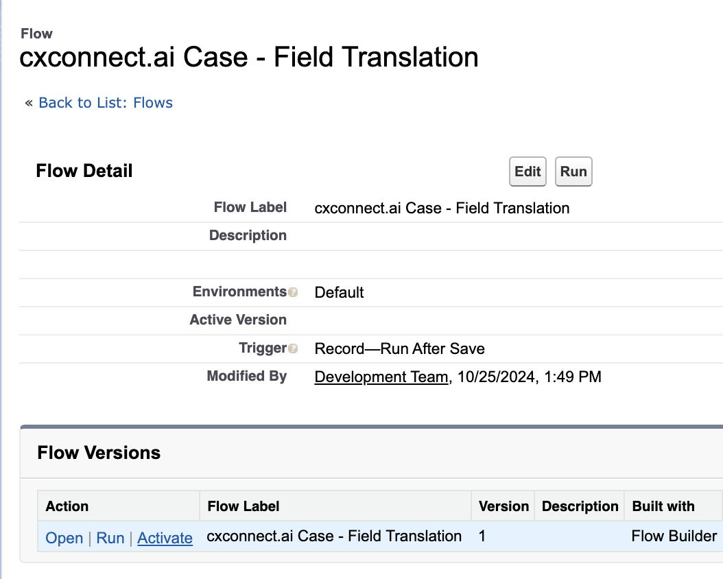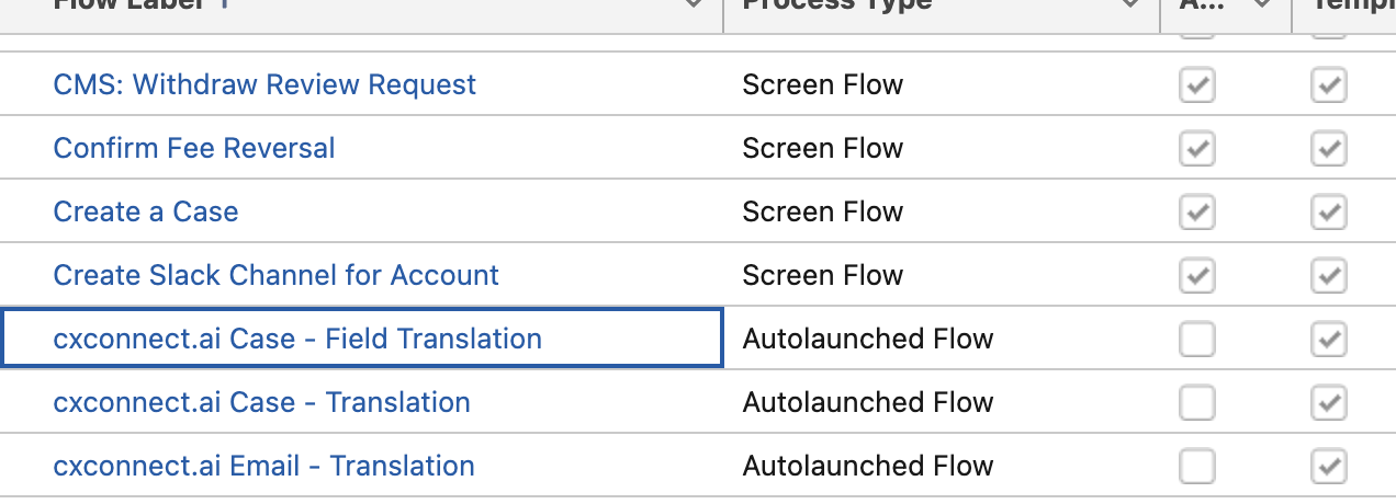 Historically, cxconnect.ai relied on custom flows to translate Case records. This process, while effective, was subject to latency and additional administrative overhead. Starting in v3.1 cxconnect.ai has opted to bypass working within Flows to prefer translating records when an agent loads a Case for the first time. A custom metadata field is now available to allow this translation to run immediately when a record is opened or manually with a button click.