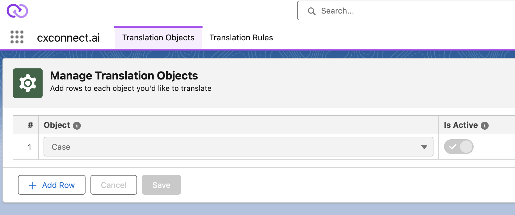 - Add Translation Rules to each object you wish to translate by clicking the “Add Row” button