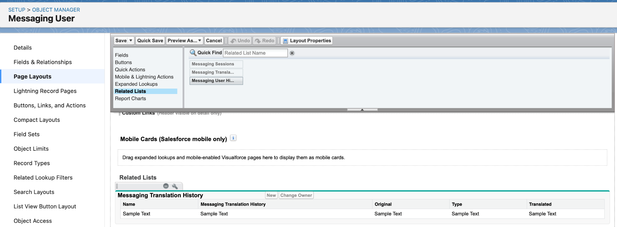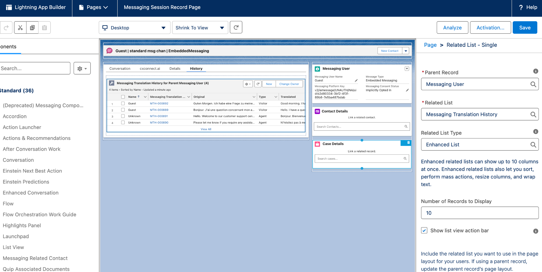 - Set the related list to “Messaging Translation History”.