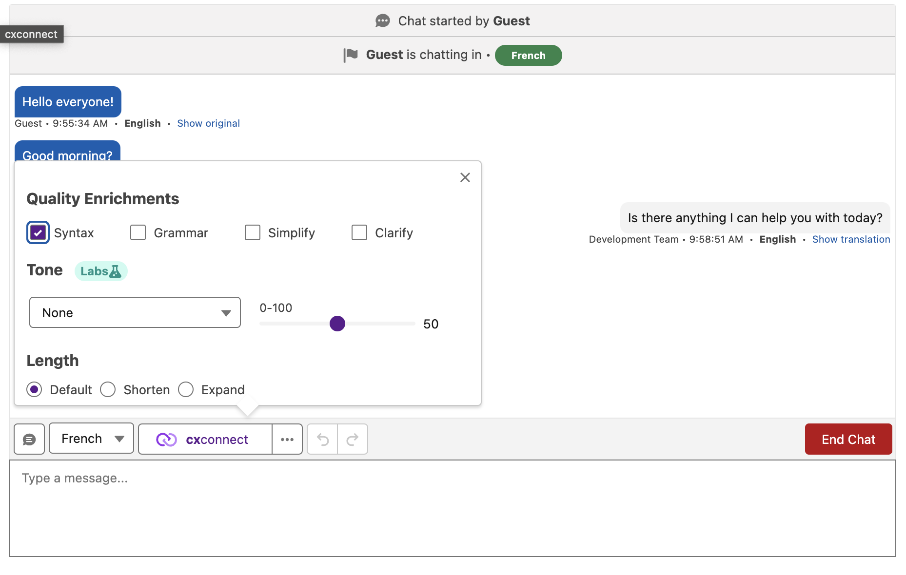 If your organization has Quality Enrichments enabled, this is now supported within Enhanced Messaging. Applying the CxconnectMessagingEnrichmentUser permission set allows an agent to utilize a wide variety of Quality Enrichments.