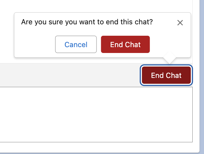 - This is a two-step process, to prevent accidental conversation ends. An agent must click to end the conversation in the additional pop up.