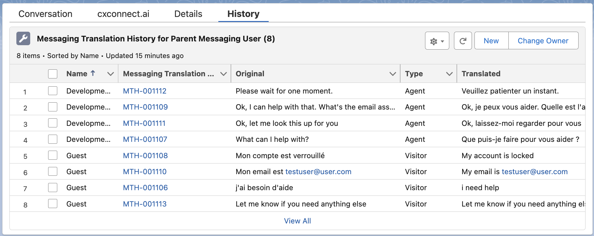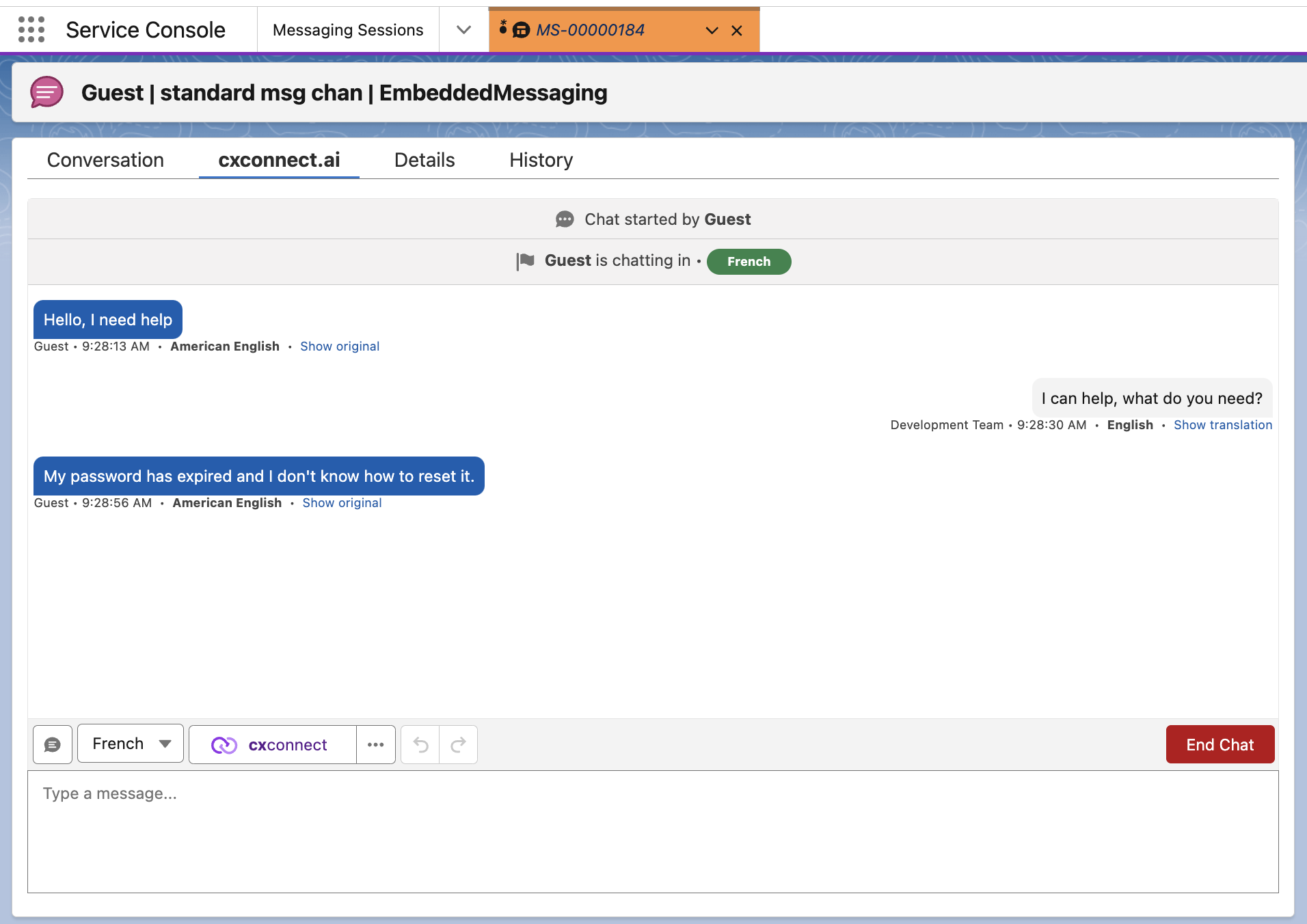 - The cxconnect.ai Messaging application for Salesforce allows for real-time translations between customers and agents within the Salesforce messaging channels.