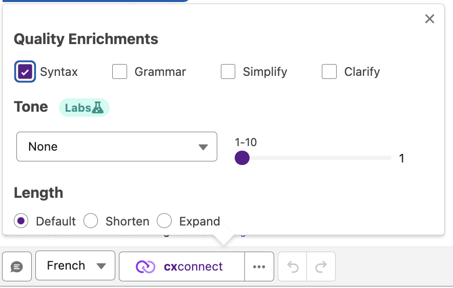 - Undo and Redo buttons will activate after AI Enrichments have generated new text. This allows agents to go back, then forward, to the original text typed.
