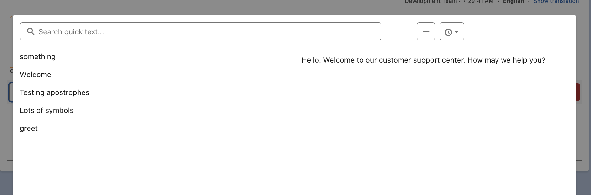 - This hooks into the organization’s Quick Text library so agents can utilize existing work flows.